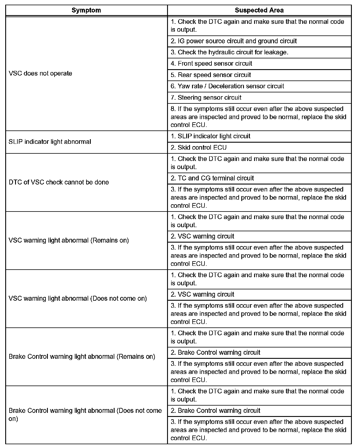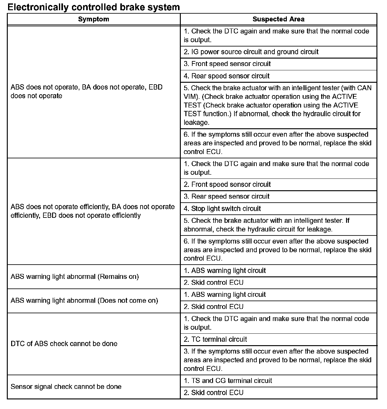 Problem Symptoms Table-Electronically Controlled Brake System (Part 2):