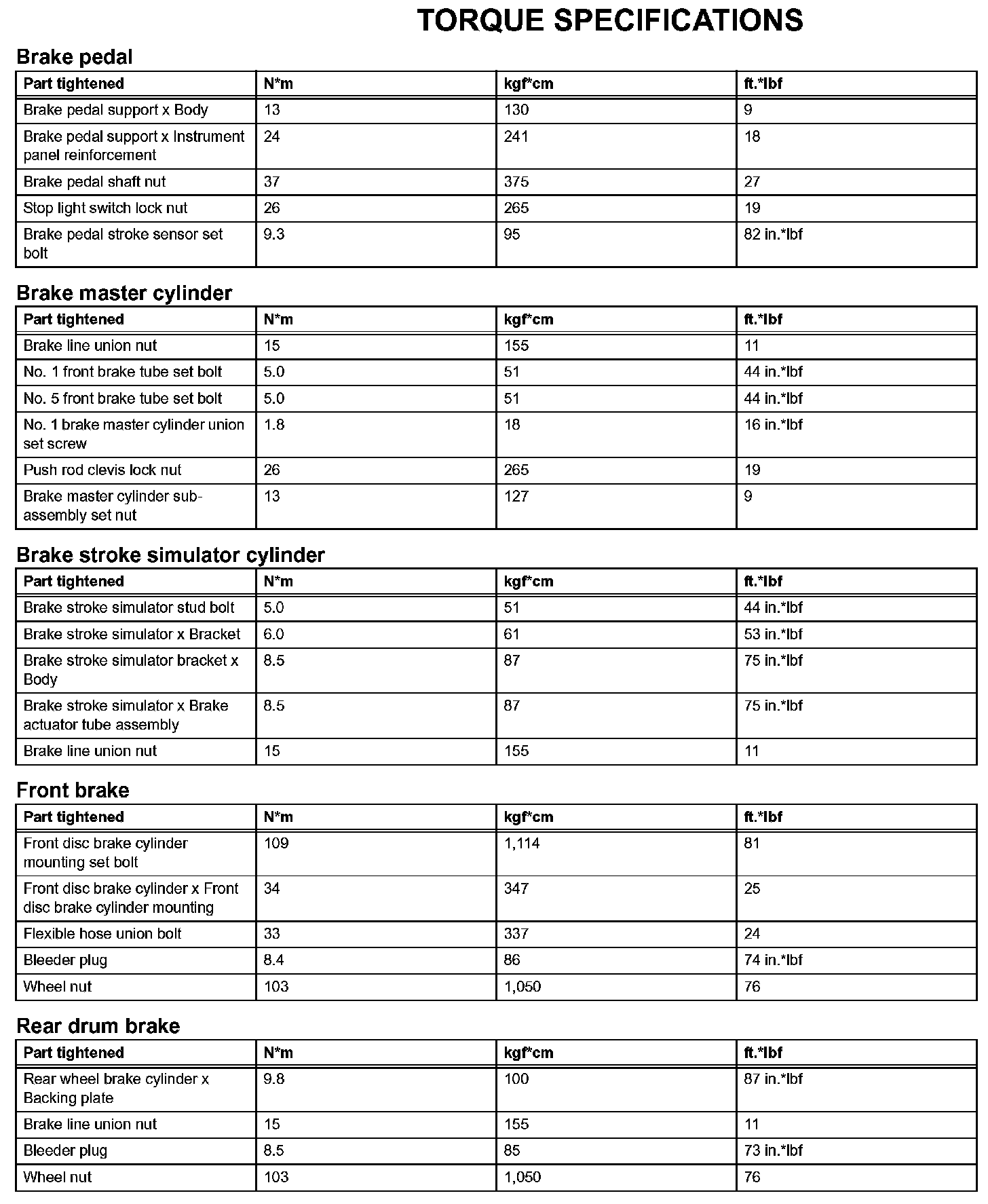 Brake - Torque Specifications: