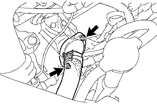 a. Remove the 2 nuts and disconnect the water inlet from the cylinder block.