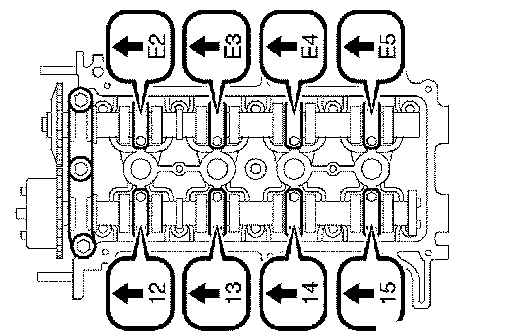 NOTICE: Uniformly loosen the bolts, keeping the camshaft level.