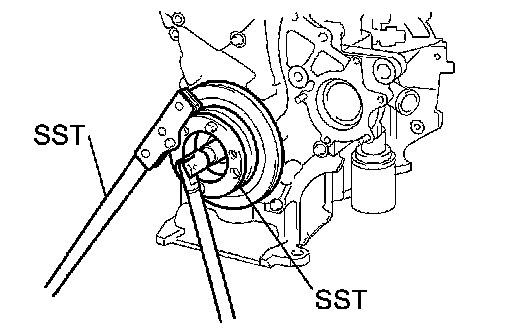 d. Using SST, remove the crankshaft pulley and crankshaft pulley set bolt.