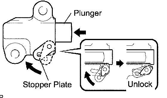 a. Lift up the stopper plate, then unlock the plunger.