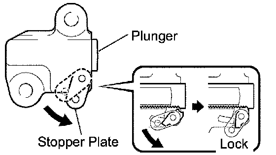 HINT: If the stopper plate is not completely lowered and a 3.0 mm (0.118 inch) diameter bar cannot be inserted, unlock and pull out the plunger slightly Then the stopper plate will be completely lowered and a 3.0 mm (0.118 inch) diameter bar can be inserted easily