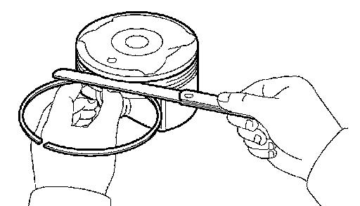 a. Using a feeler gauge, measure the clearance between the new piston ring and the wall of the ring groove.