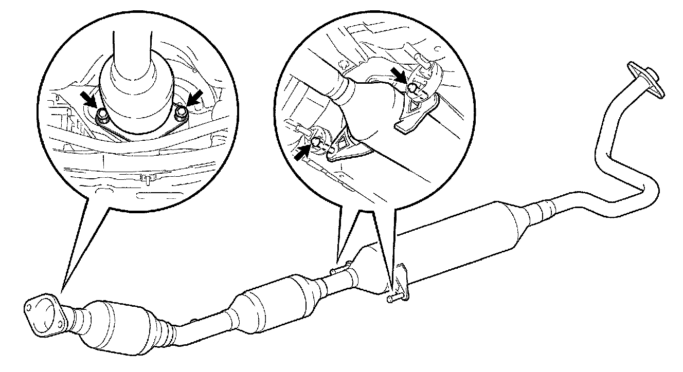 b. Remove the front exhaust pipe from the 2 exhaust pipe supports.