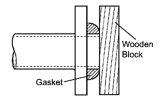 b. Using a plastic-faced hammer and wooden block, tap in a new gasket until its surface is flush with the exhaust manifold.