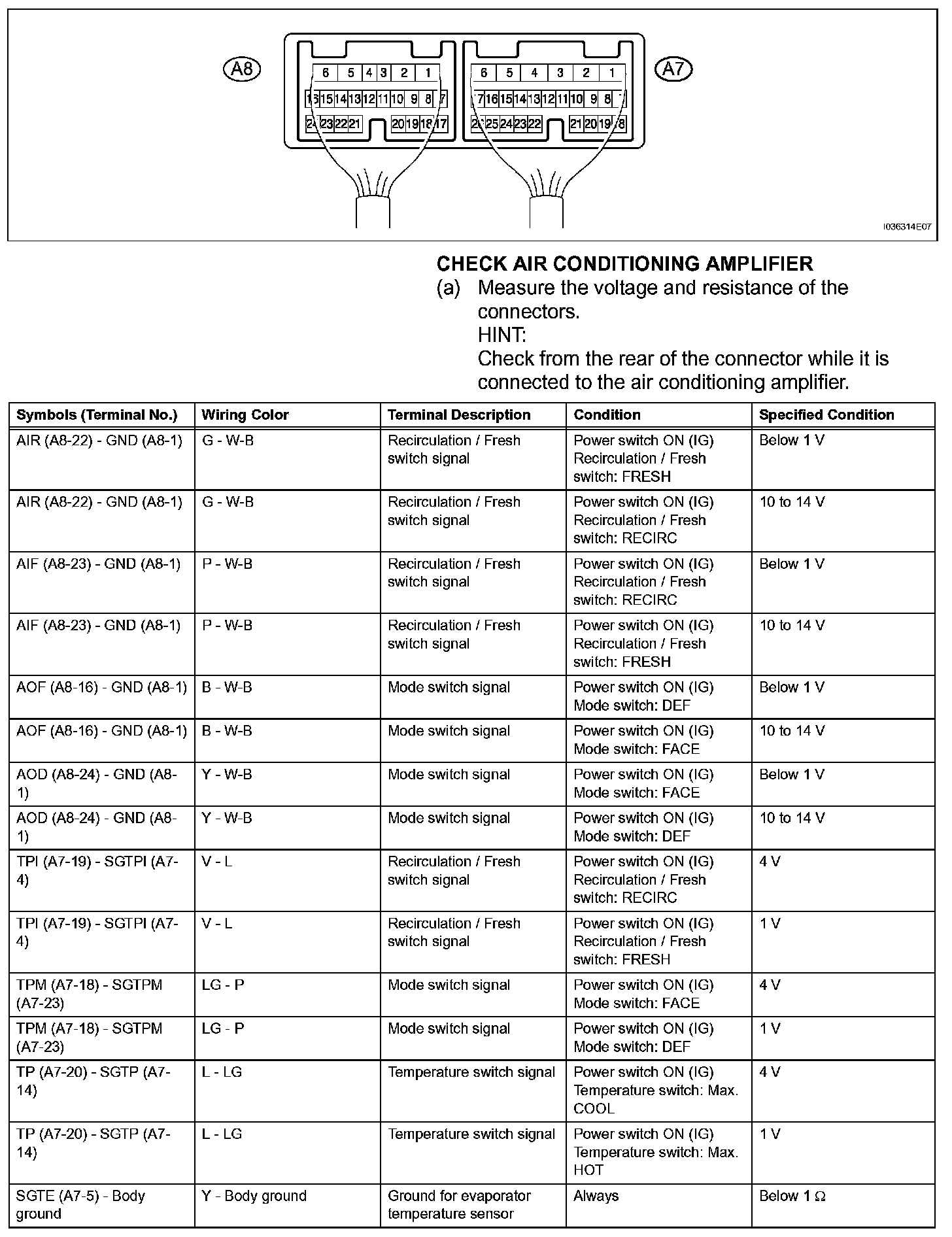 Pinout Values and Diagnostic Parameters