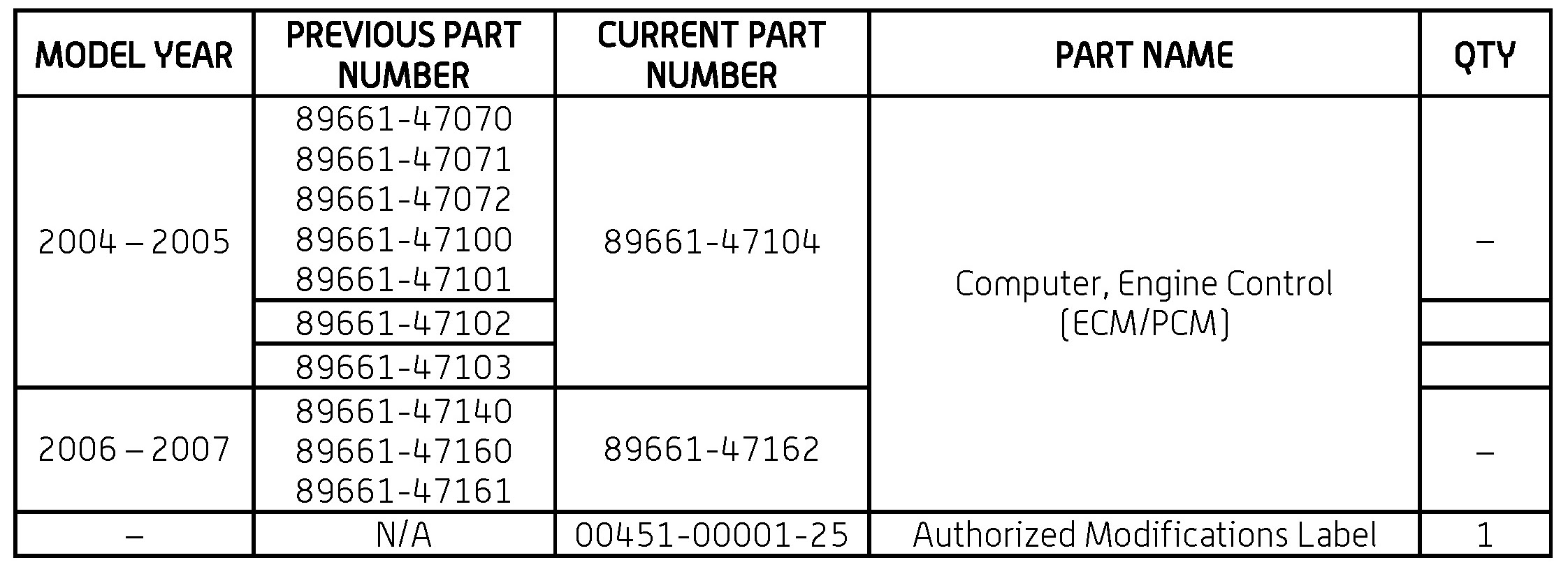 - ECM part number [Refer to the Parts Information section for the CURRENT PART NUMBER]