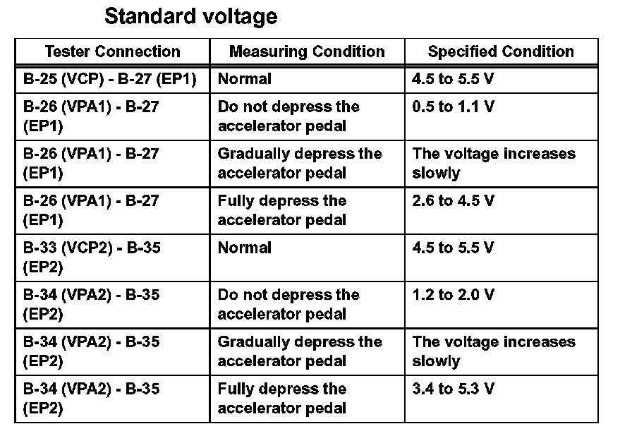 If the standards are not met, replace the accelerator pedal rod.