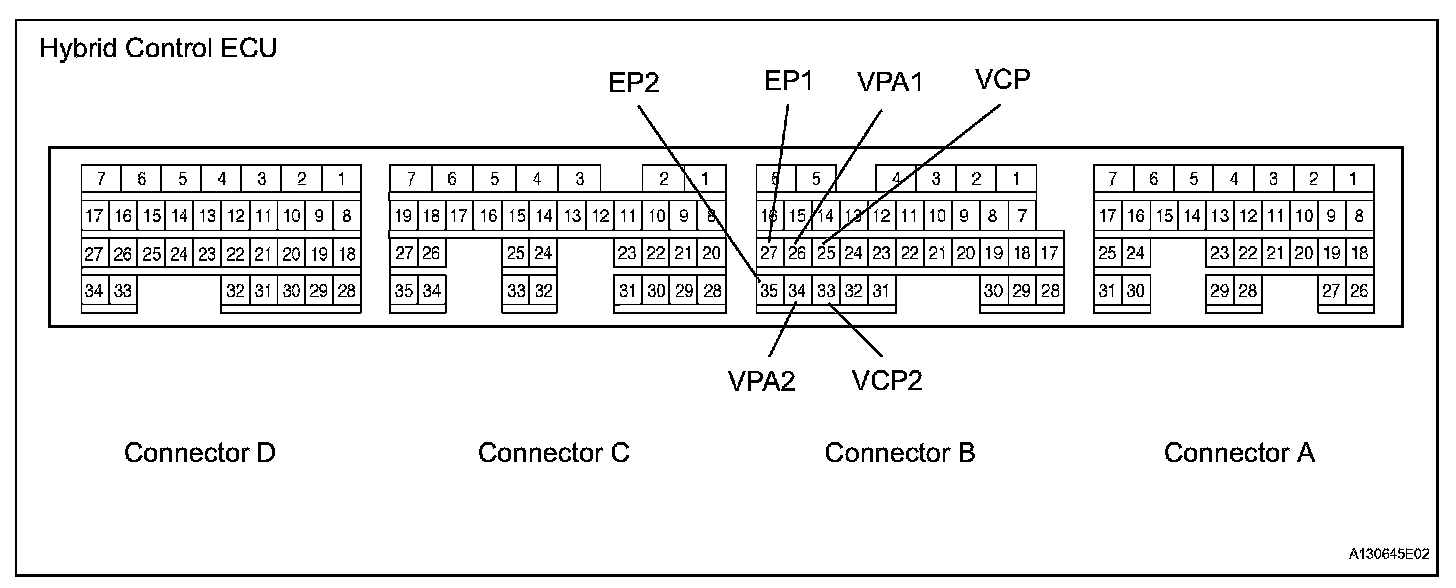 - Perform the inspection on the hybrid vehicle control ECU side of the connector.