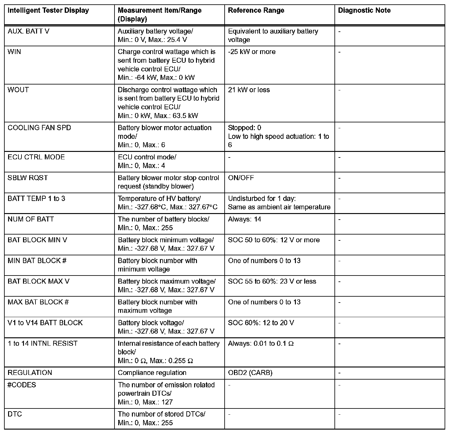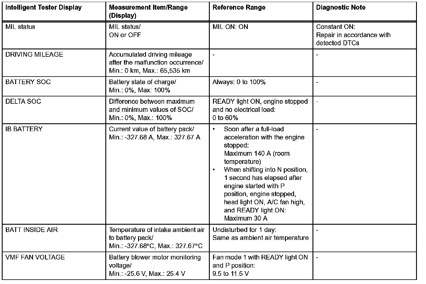 - The DATA LIST values may vary significantly if there are slight differences in measurement, differences in the environment in which the measurements are obtained, or the aging of the vehicle. Thus, definite standards or judgment values are unavailable. There may be a malfunction even if a measured value is within the reference range.