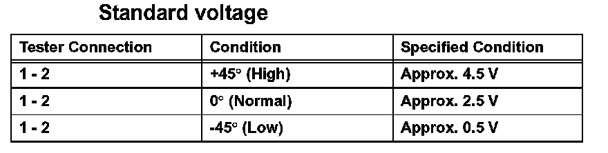 If the result is not as specified, replace the sensor sub-assembly.