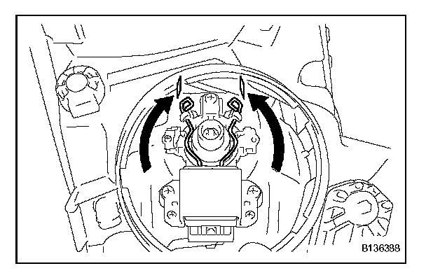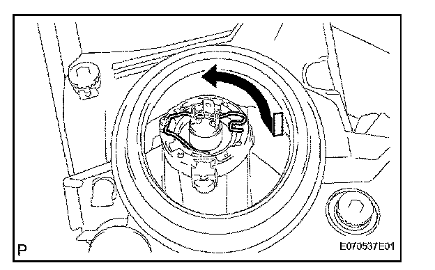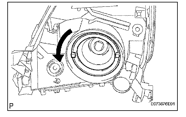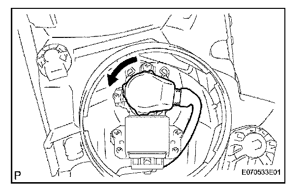 b. Turn the headlight light control ECU socket in the direction indicated by the arrow in the illustration to install it.