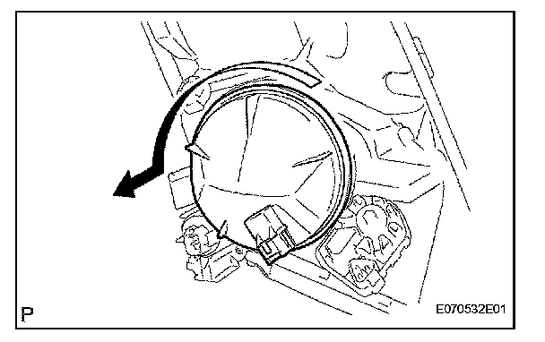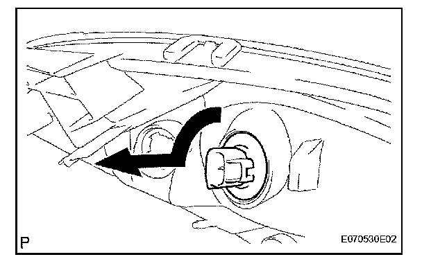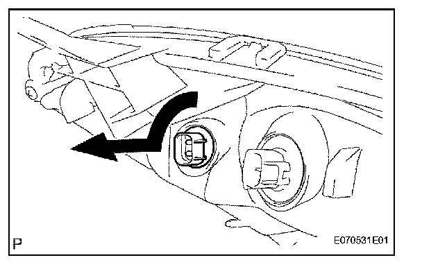 b. Turn the headlight light control ECU socket in the direction indicated by the arrow in the illustration to remove it.