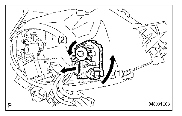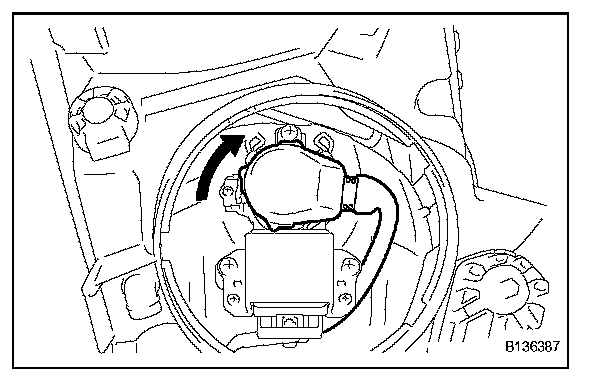 a. Rotate the headlight leveling motor in the direction indicated by arrow (1) in the illustration.