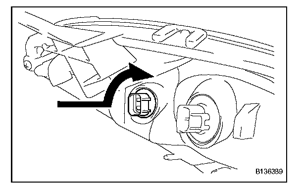 HINT: If the bulb socket cannot be removed due to interference with the reflector, turn the aiming screw counterclockwise, move the reflector, and then remove the bulb socket.