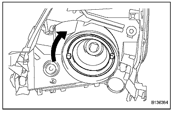 b. Turn the headlight socket cover in the direction indicated by the arrow in the illustration to install it.