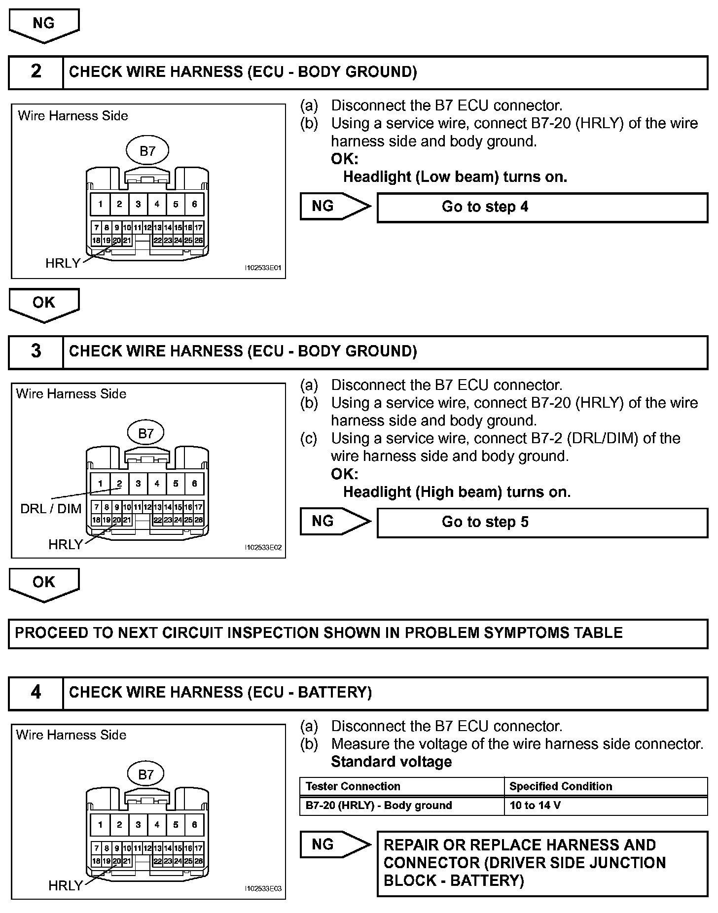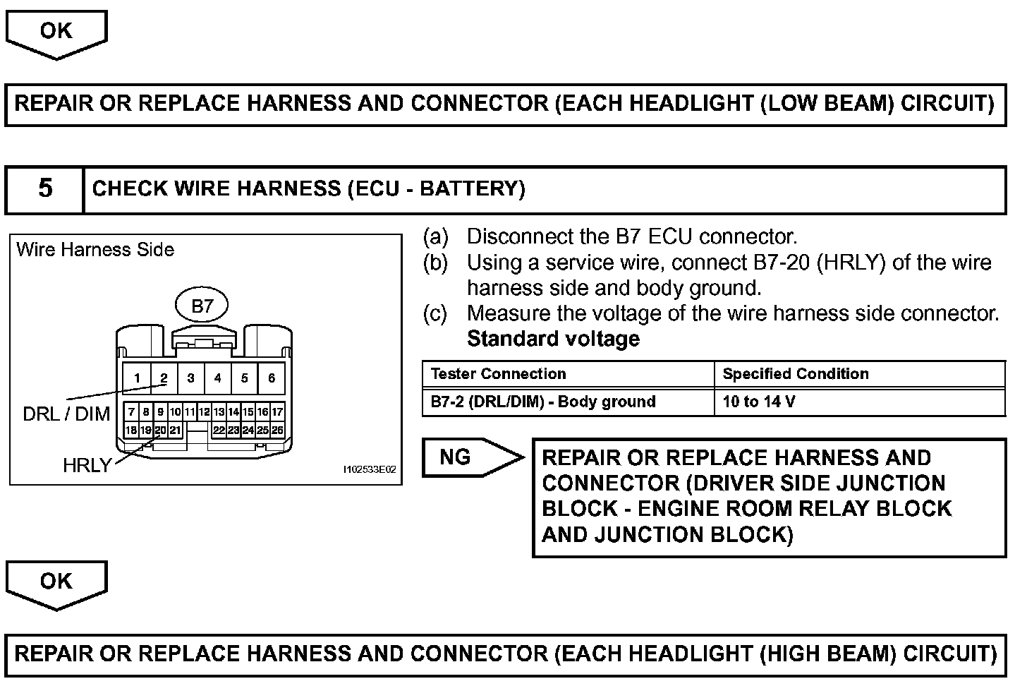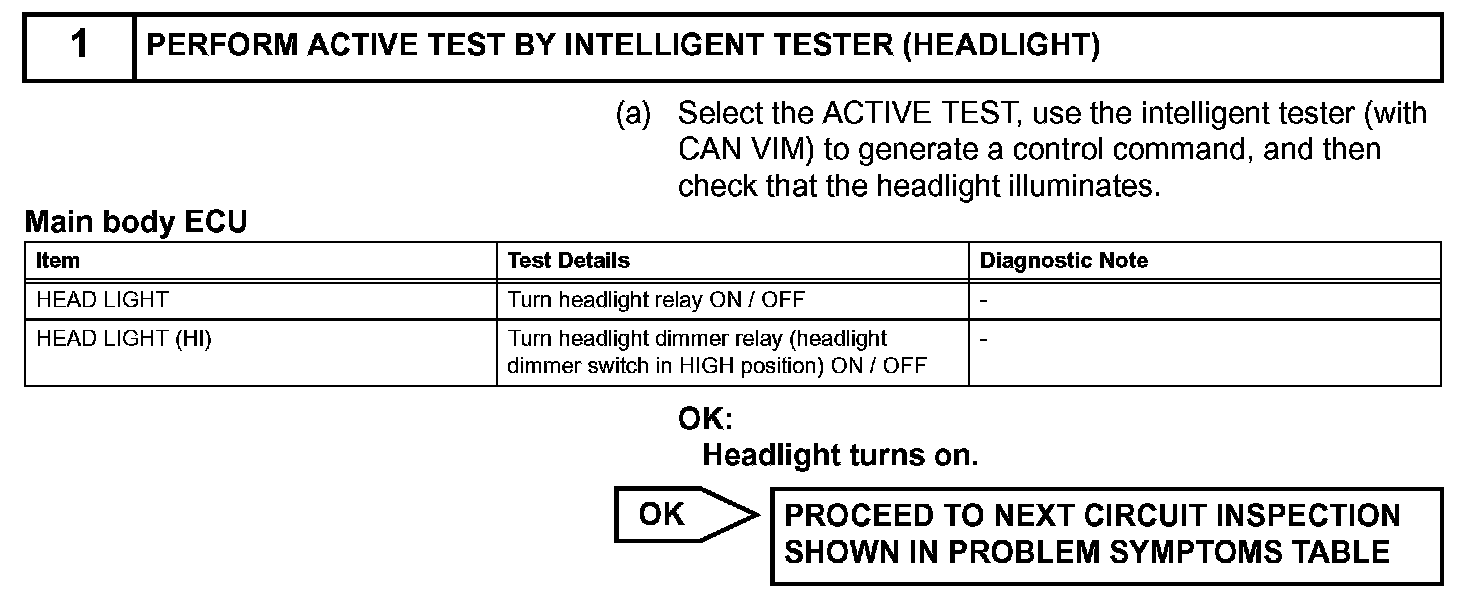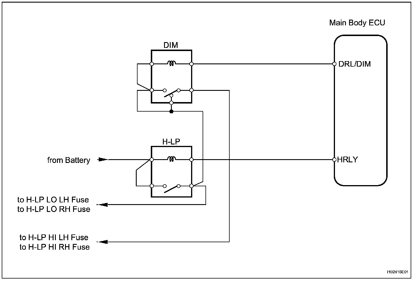 The main body ECU controls H-LP relay and DIM relay when signals are received from the combination switch.