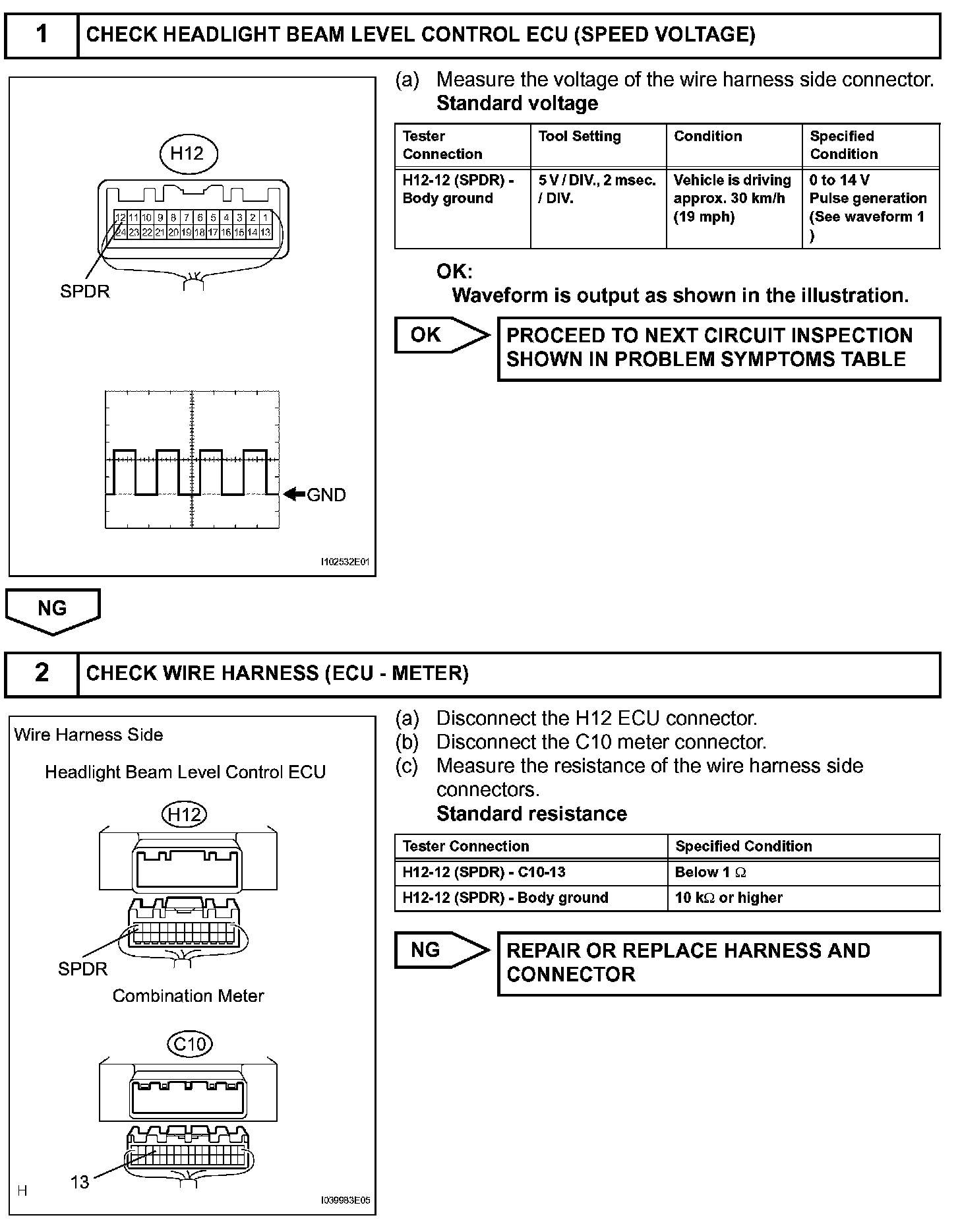 Headlight beam level control ECU receives the vehicle speed signal from the combination meter.