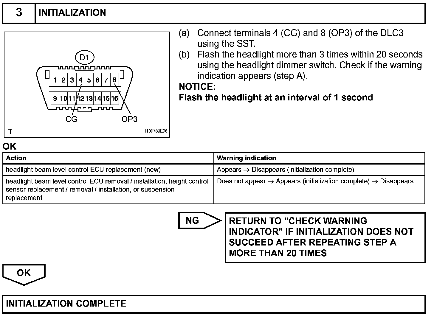 1. HEADLIGHT BEAM LEVEL CONTROL ECU INITIALIZATION