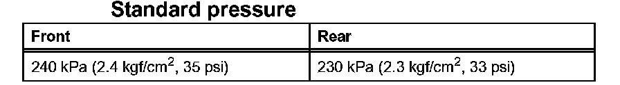 HINT: In winter, as the tire pressure may decrease depending on the ambient temperature, increase the tire pressure by 20 kPa (0.2 kgf/cm2, 2.9 psi) to 30 kPa (0.3 kgf/cm2, 4.3 psi) above the specified value after confirmation that the initialization has been completed.