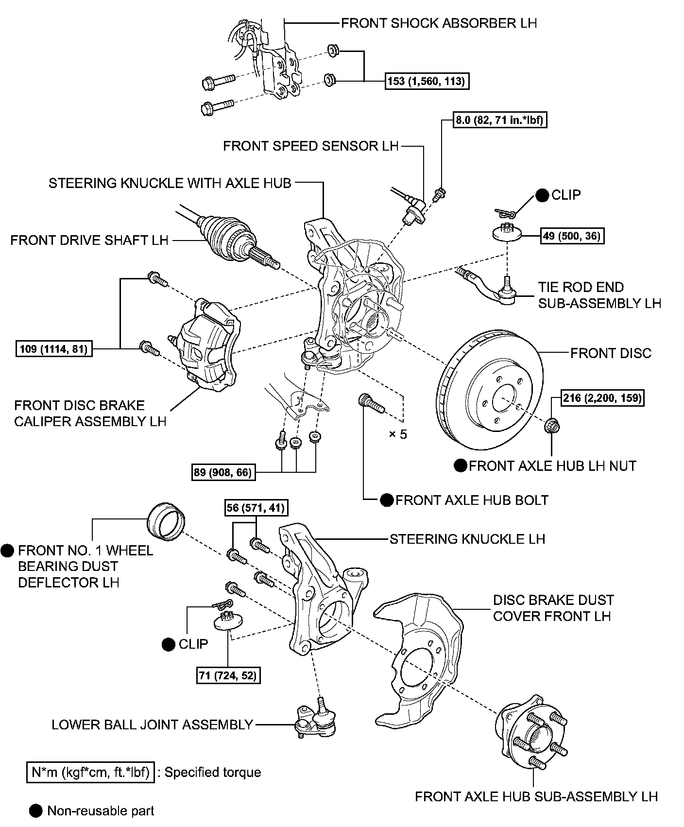 Torque: 153 Nm (1,560 kgf-cm, 113 ft. lbs.)
