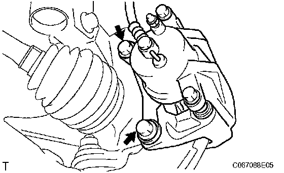 NOTICE: Hang down the disc brake caliper with a wire or equivalent.