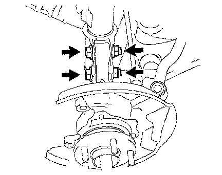 c. Remove the 2 bolts and 2 nuts, and remove the front axle from the front shock absorber.