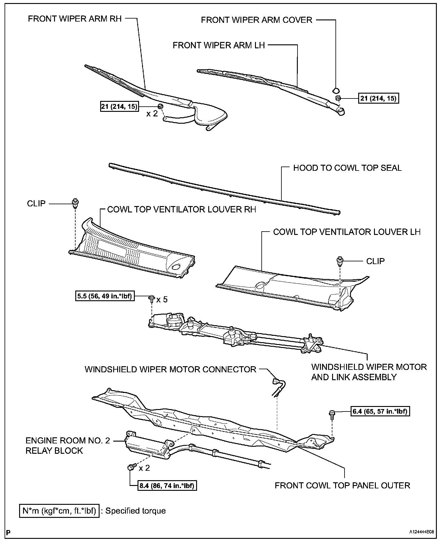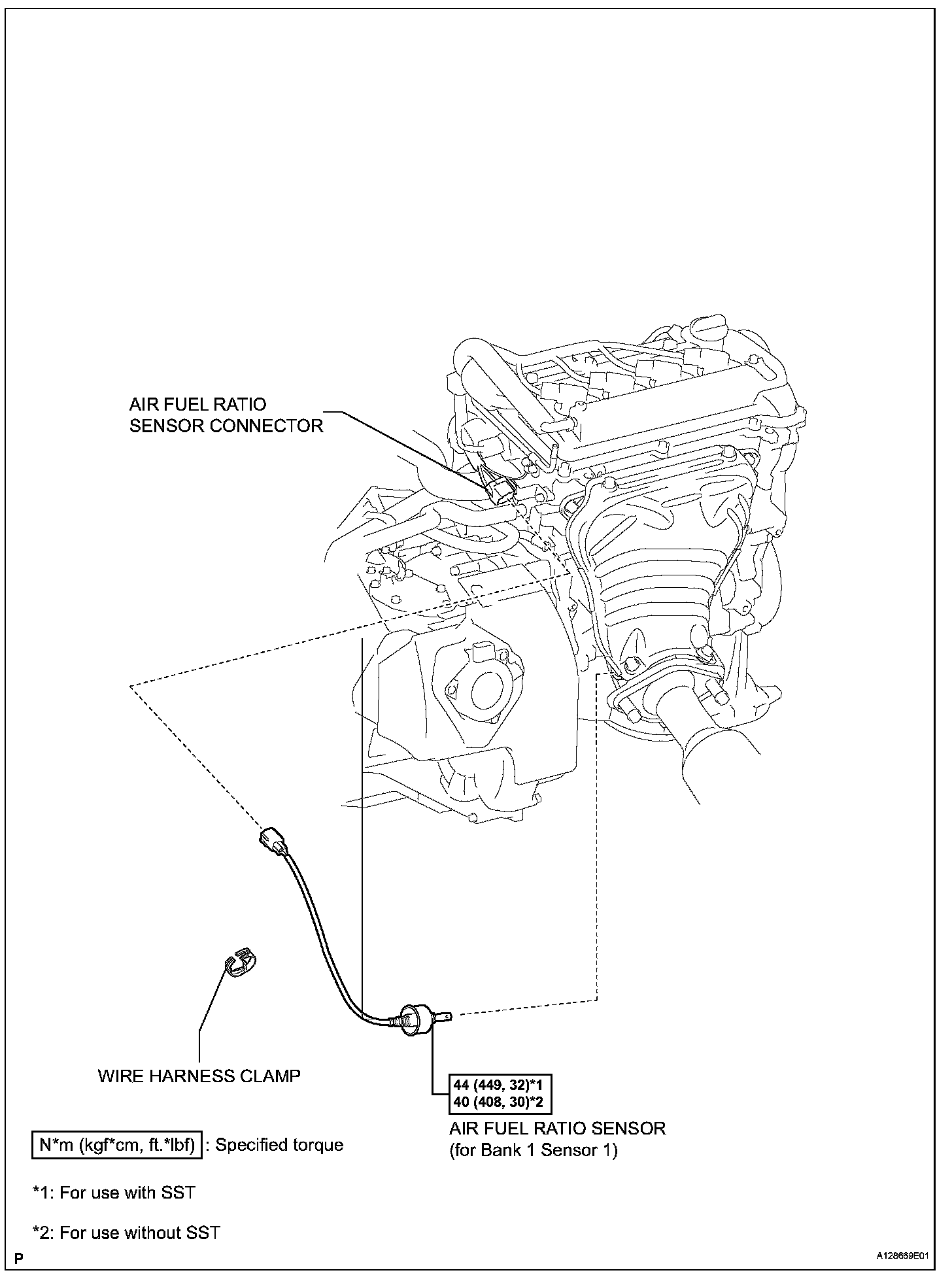 Torque: 44 N.m (449 kgf.cm, 32 ft. lbf) for use with SST