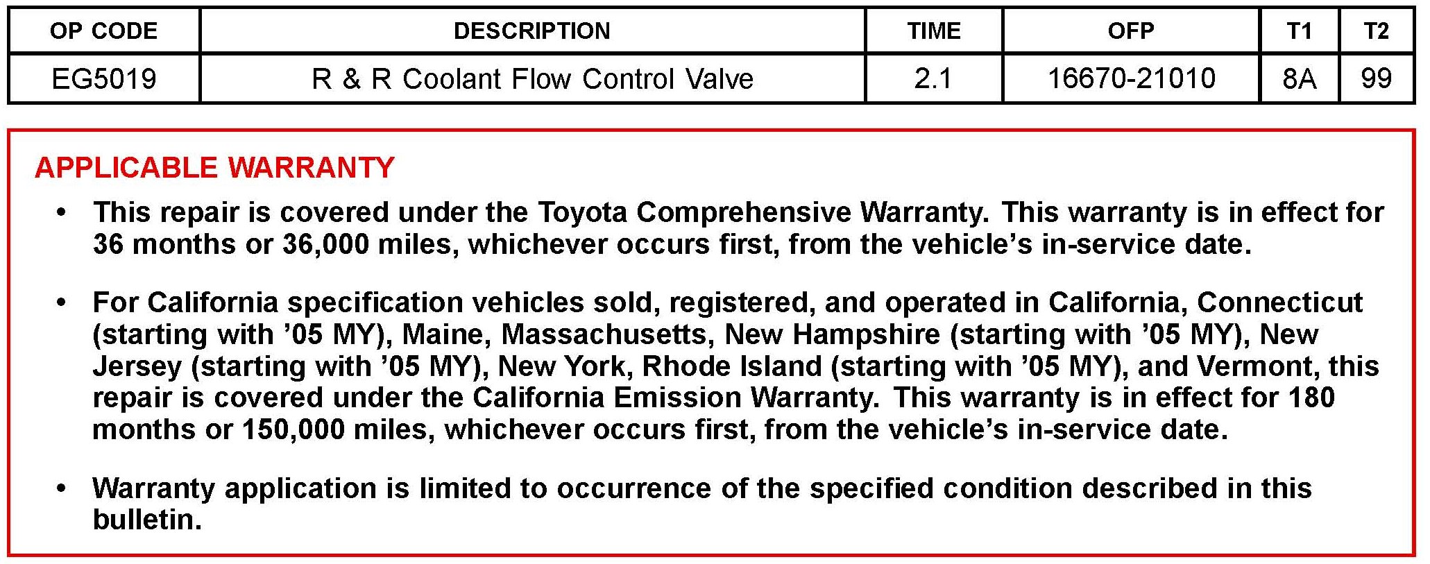 Some customers with 2004 - 2007 model year Prius vehicles may experience a MIL "ON" condition with Diagnostic Trouble Code (DTC) P1121, Coolant Flow Control Valve Position Sensor Stuck. Use the repair procedure below to address this condition.