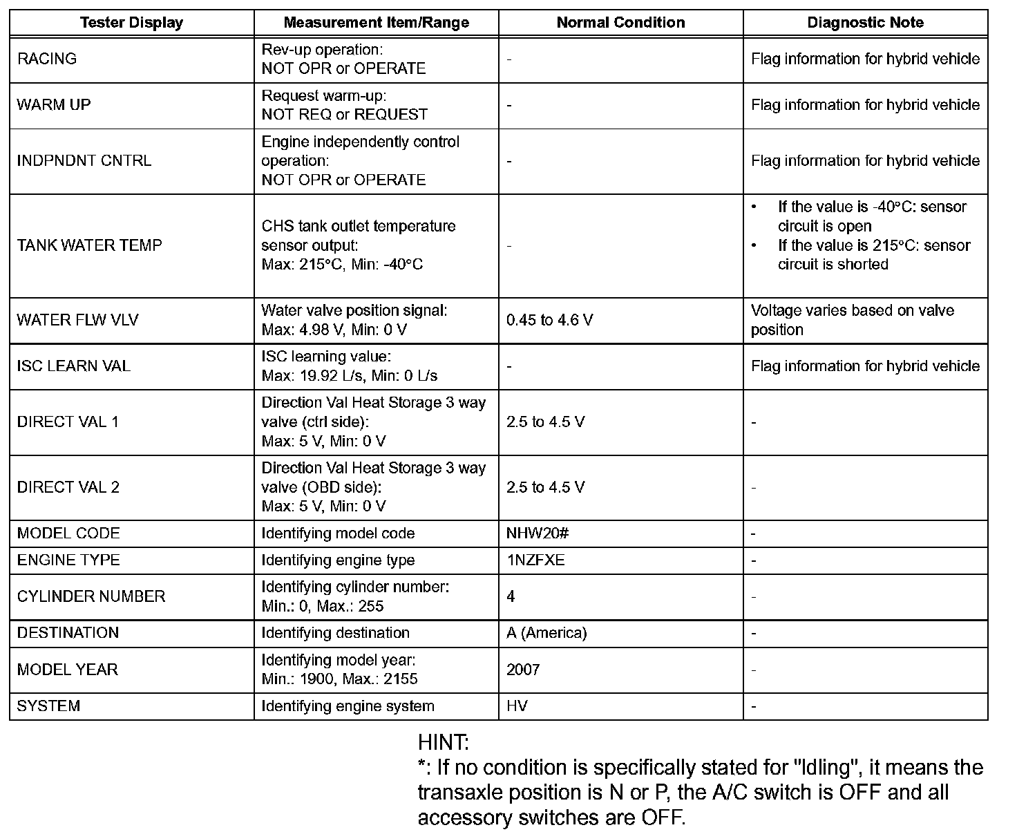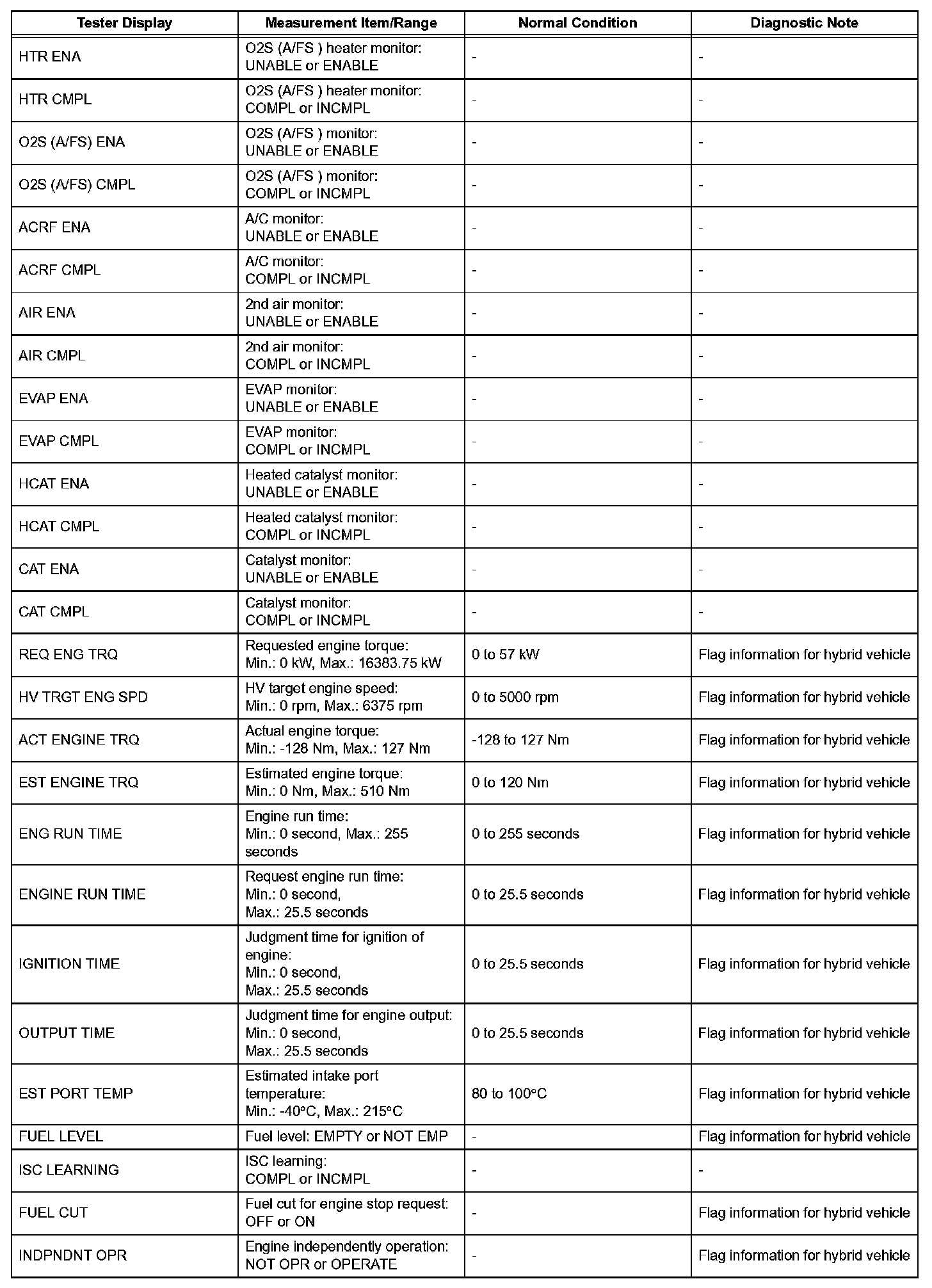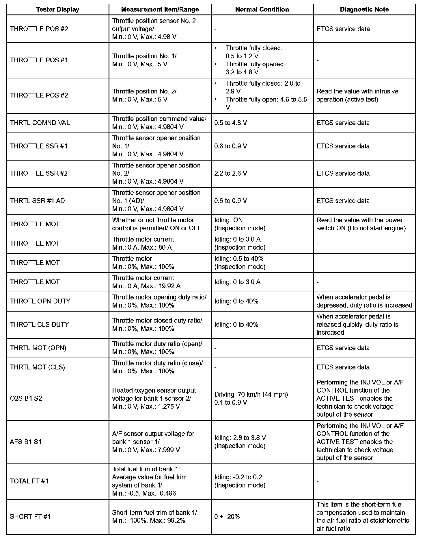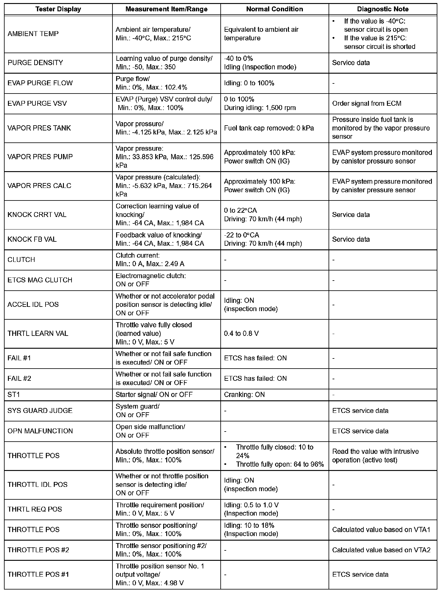 DATA LISTHINT: Using the intelligent tester DATA LIST allows switch, sensor, actuator and other item values to be read without removing any parts. Reading DATA LIST early in troubleshooting is one way to shorten labor time.