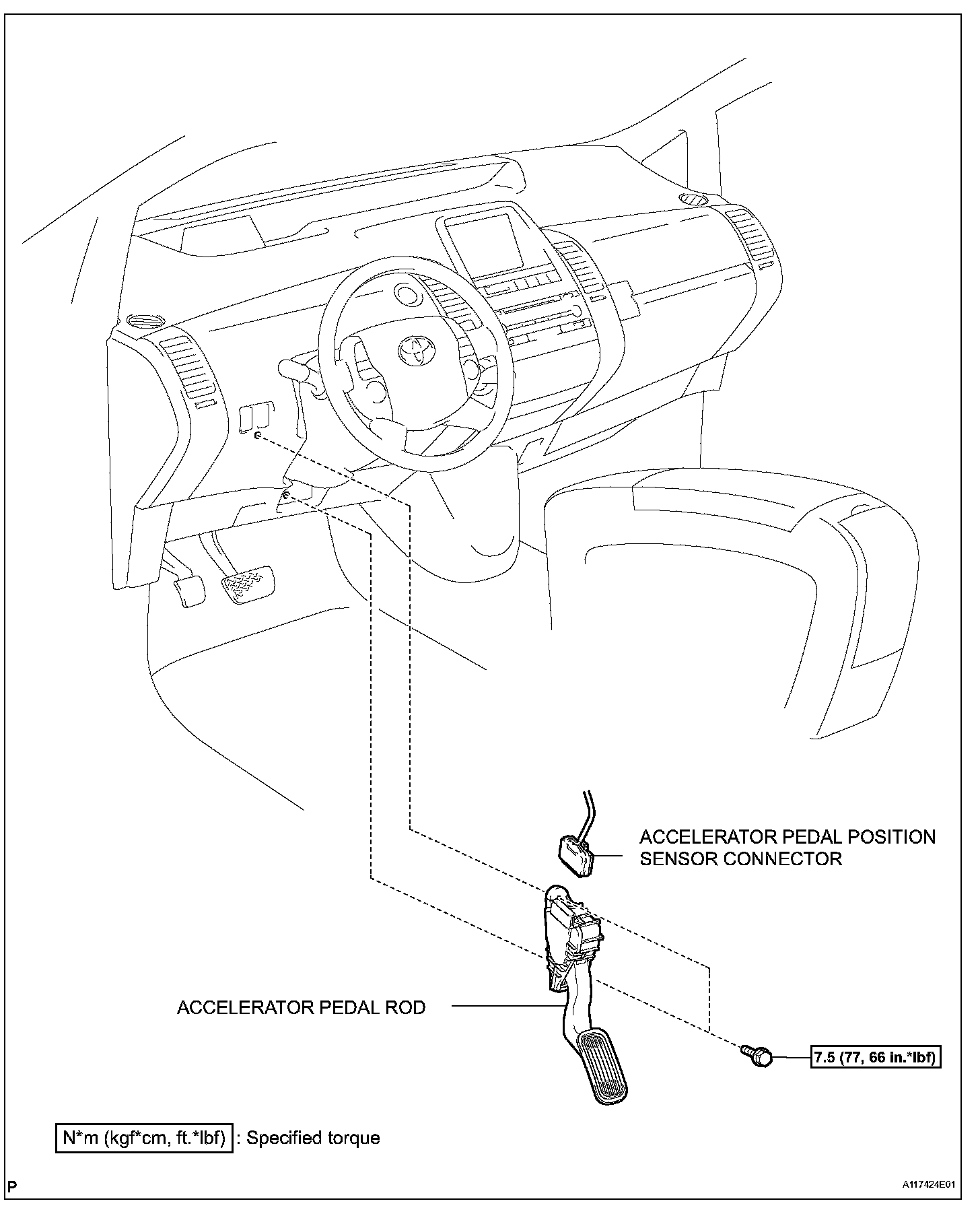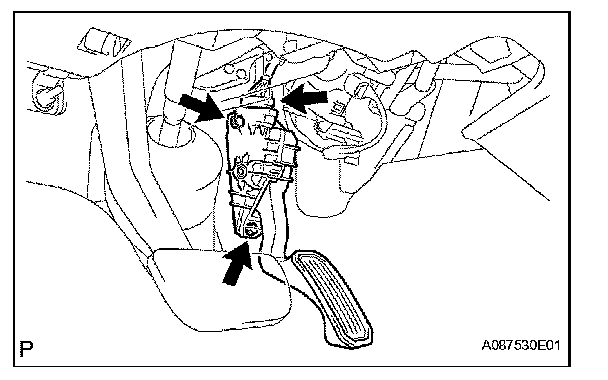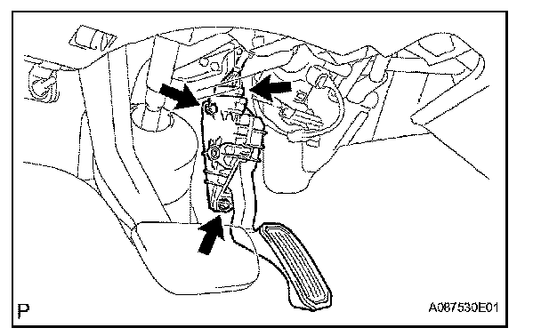 b. Remove the 2 bolts, then remove the accelerator pedal rod.