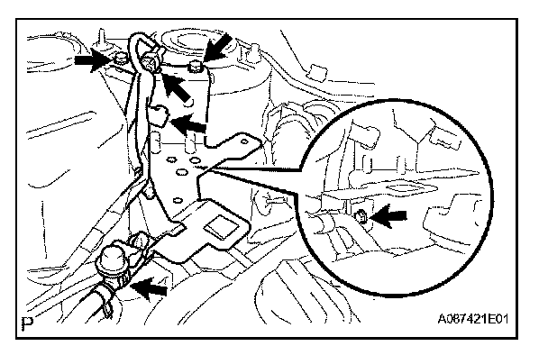 a. Remove the 2 wire harness clamps.