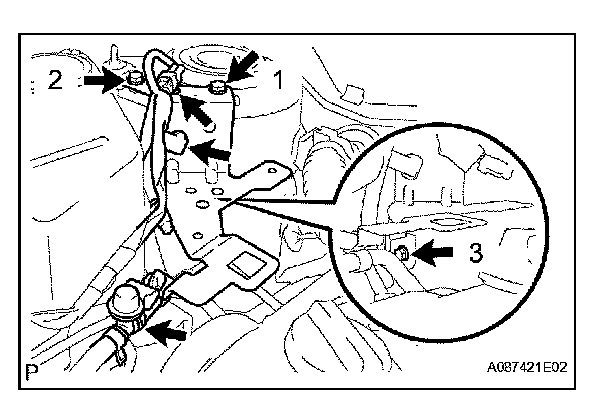 b. Tighten the 3 bolts to the specified torque in the sequence shown in the illustration.