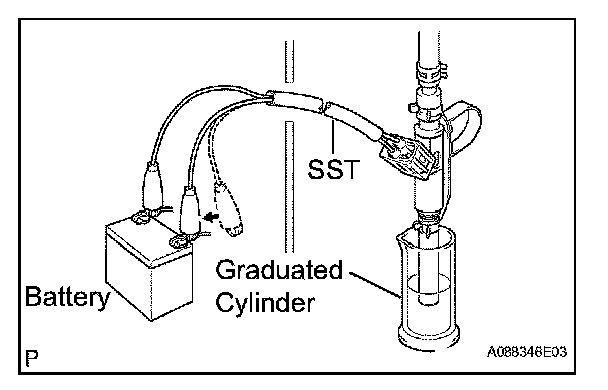 8. Connect SST to the battery, then measure the injection volume for 15 seconds. Perform the inspection 2 or 3 times, then calculate the average.