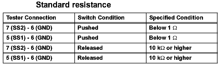 If the resistance is not as specified, replace the power switch.