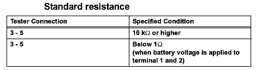 If the result is not as specified, replace the relay.