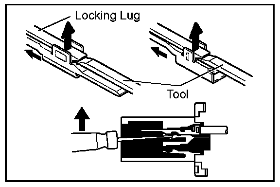 a. Locking device must be disengaged before the terminal locking clip can be released and the terminal removed from the connector.