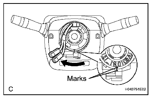 b. Rotate the spiral cable clockwise approximately 2.5 turns to align the marks.