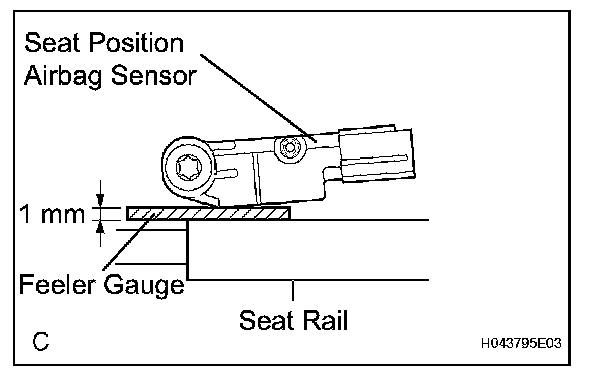 c. Using a 1 mm (0.039 in.) feeler gauge, install the seat position sensor.
