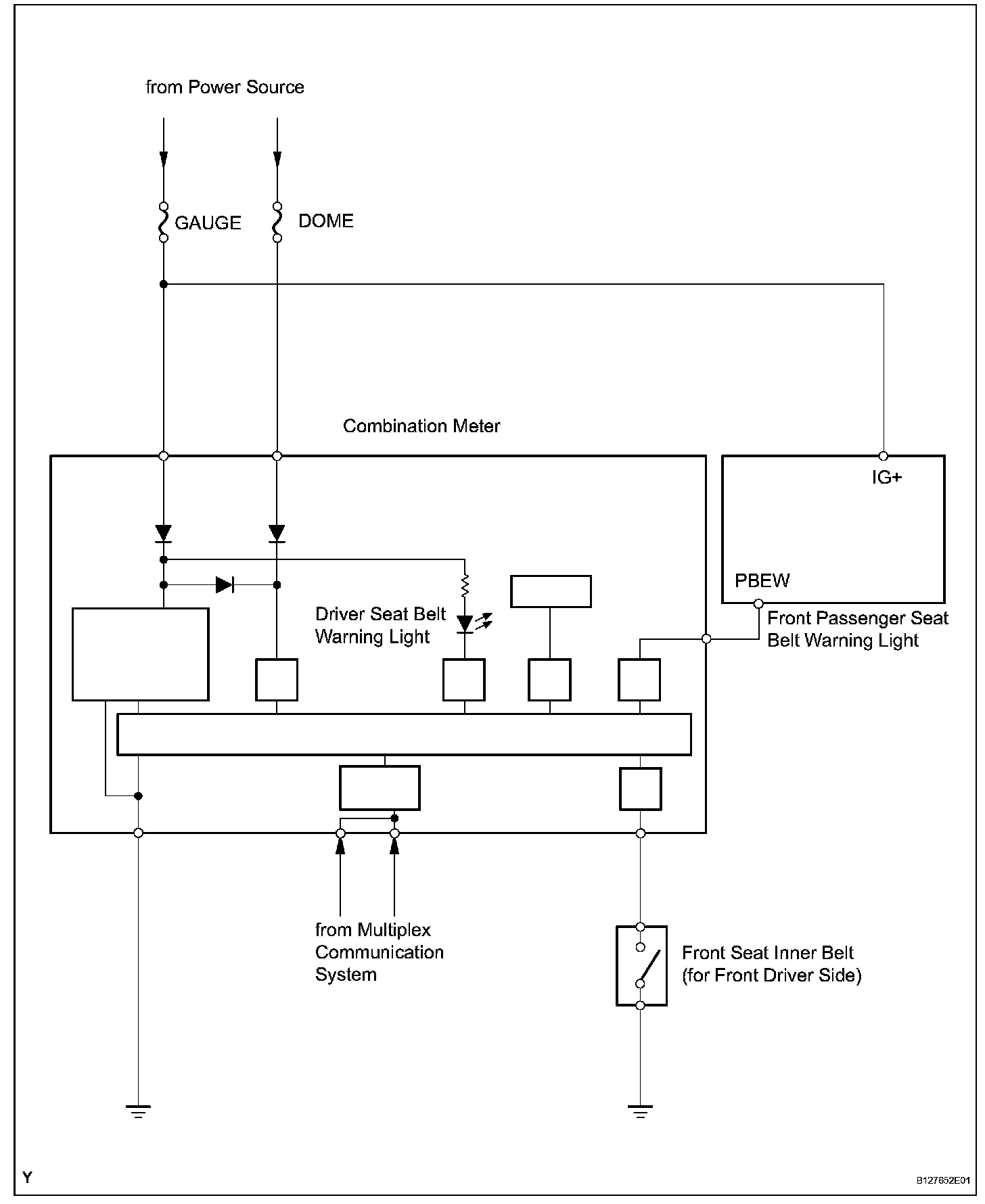 When the power switch is ON (IG) and the passenger or driver side seat belt is not fastened, the seat belt warning system repeatedly flashes the seat belt warning light. The system determines the seat belt status by checking if the seat belt buckle switch is OFF (seat belt fastened) or ON (seat belt unfastened).