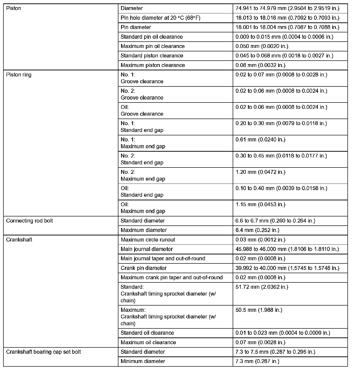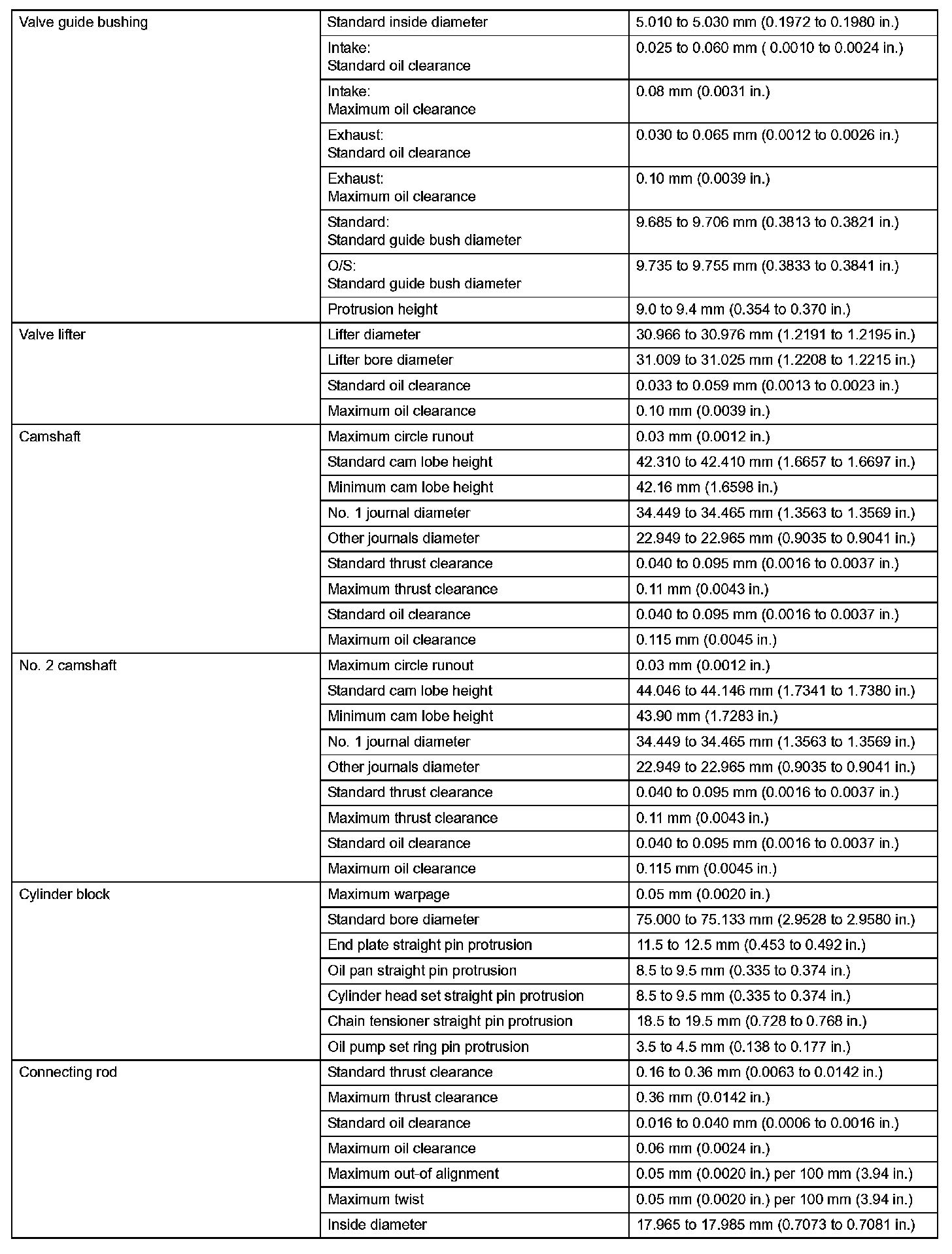 Engine Mechanical - Service Data (Part 2):