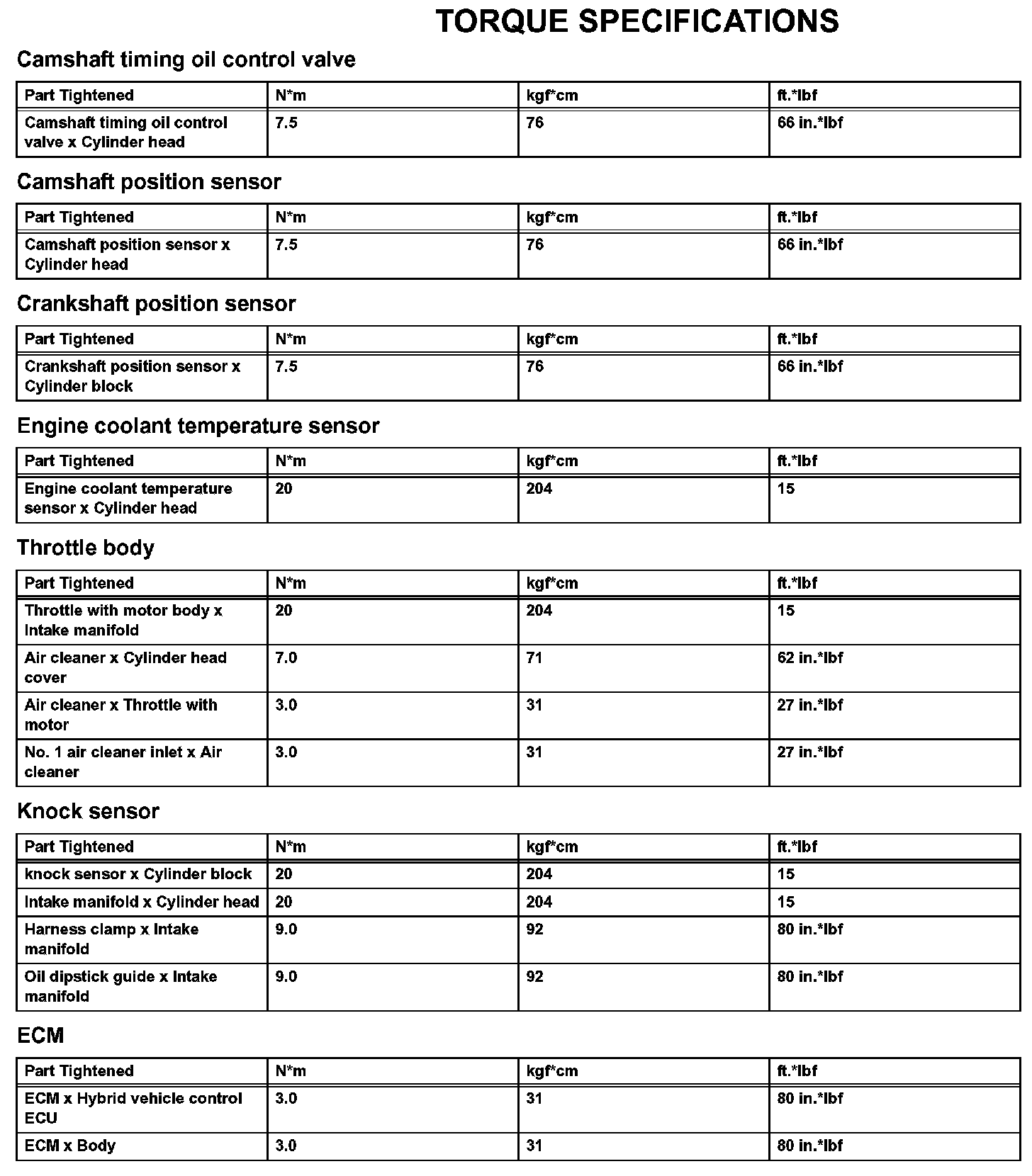 Engine Control System - Torque Specifications: