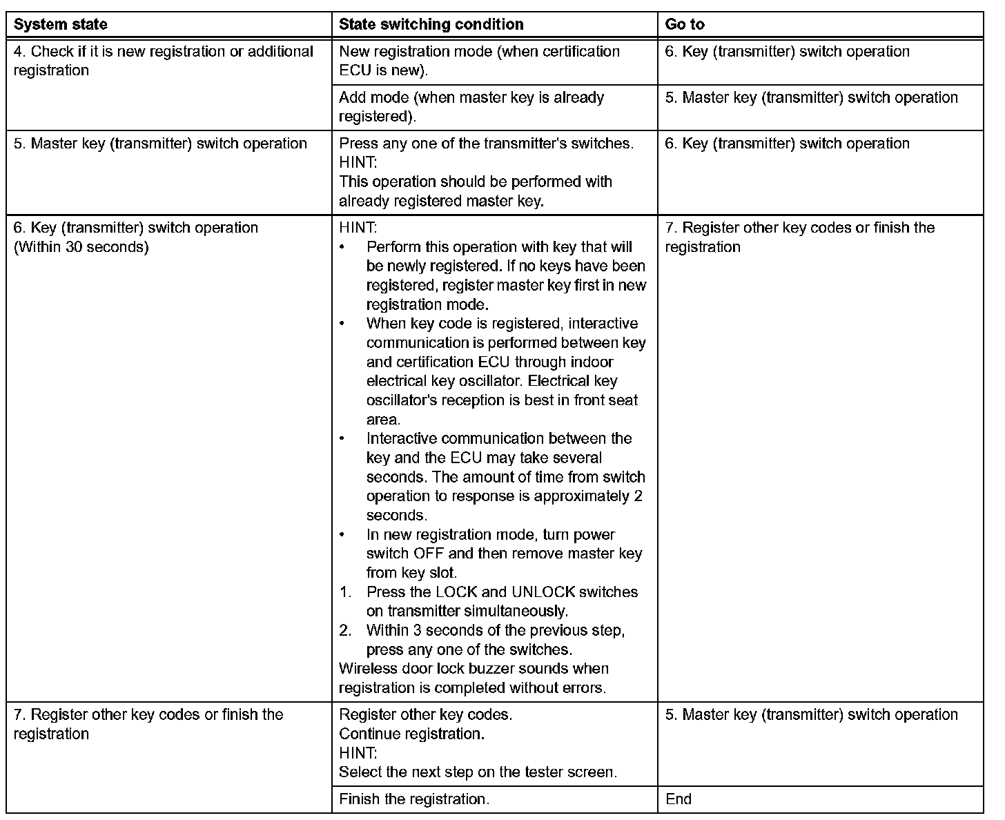 - When registering a transmitter, do not have any other transmitters close to the transmitter being registered. The certification ECU may be unable to recognize which transmitter is sending signals.