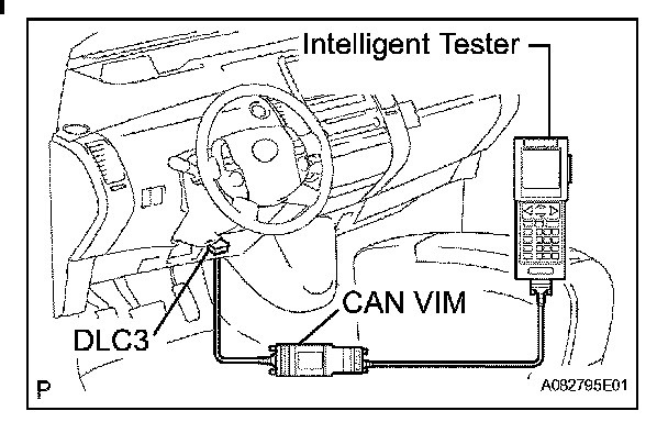 HINT: Connect the cable of the intelligent tester (with CAN VIM) to the DLC3, turn the power switch ON (IG) and attempt to use the intelligent tester. If the display informs that a communication error has occurred, there is a problem either with the vehicle or with the tester.