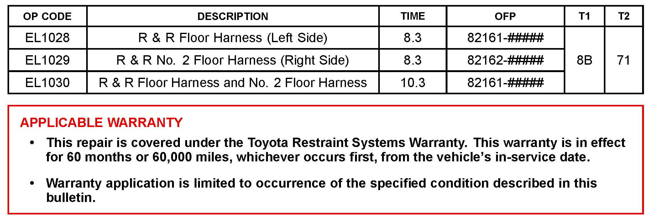 After confirming the vehicle condition matches this bulletin this TSB will direct you to replace the floor wire harness. In order to do this it is necessary to first remove several major components such as the instrument panel front seats headliner and seat belts. This bulletin provides detailed instructions on the removal and installation of these components.