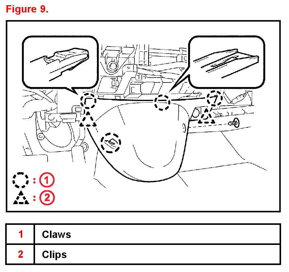 9. Remove the instrument cluster finish panel assembly center. (B, L, R)