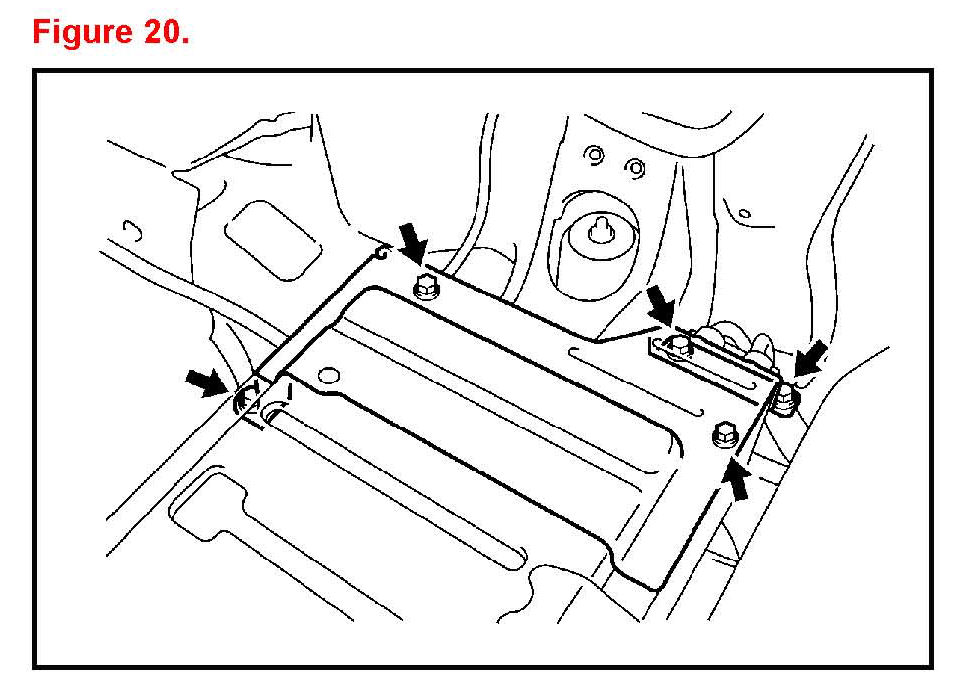 22. Remove the battery bracket reinforcement by removing the 7 bolts. (B, L)
