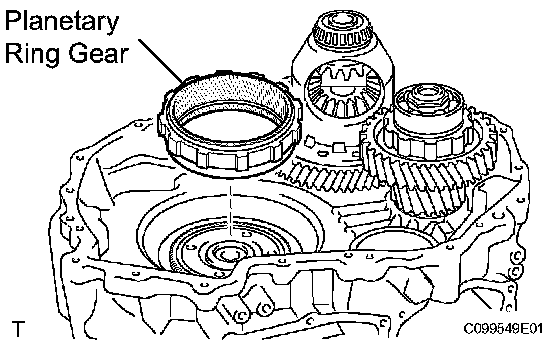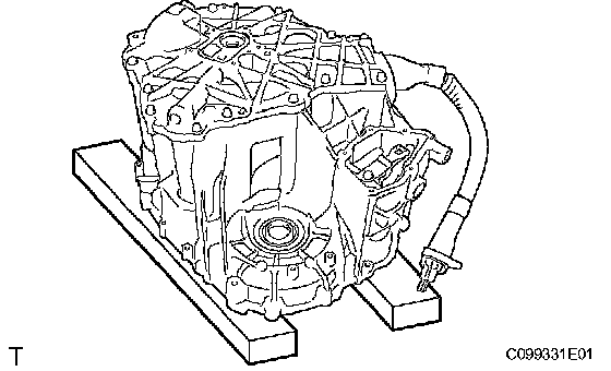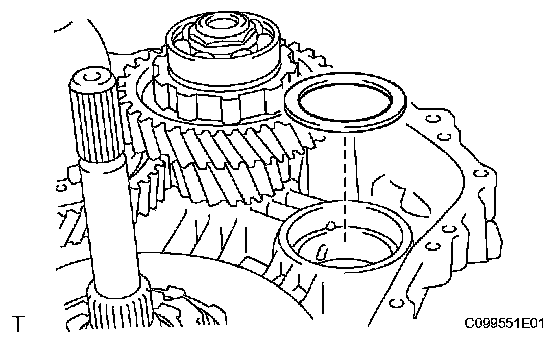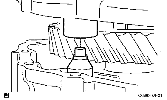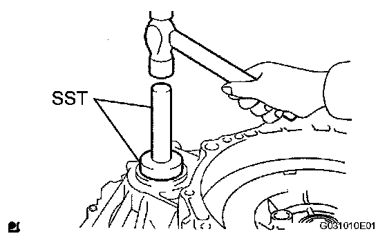 3 Using SST, tap in the differential case tapered roller bearing RH outer race to the generator.