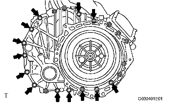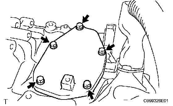 9 Using an engine sling device and chain block, remove the 13 bolts and generator.